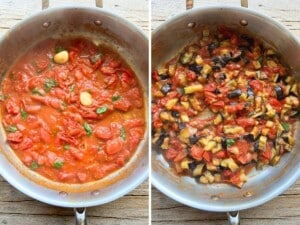 Add the eggplant to the sauce and let it simmer for another 5 minutes.